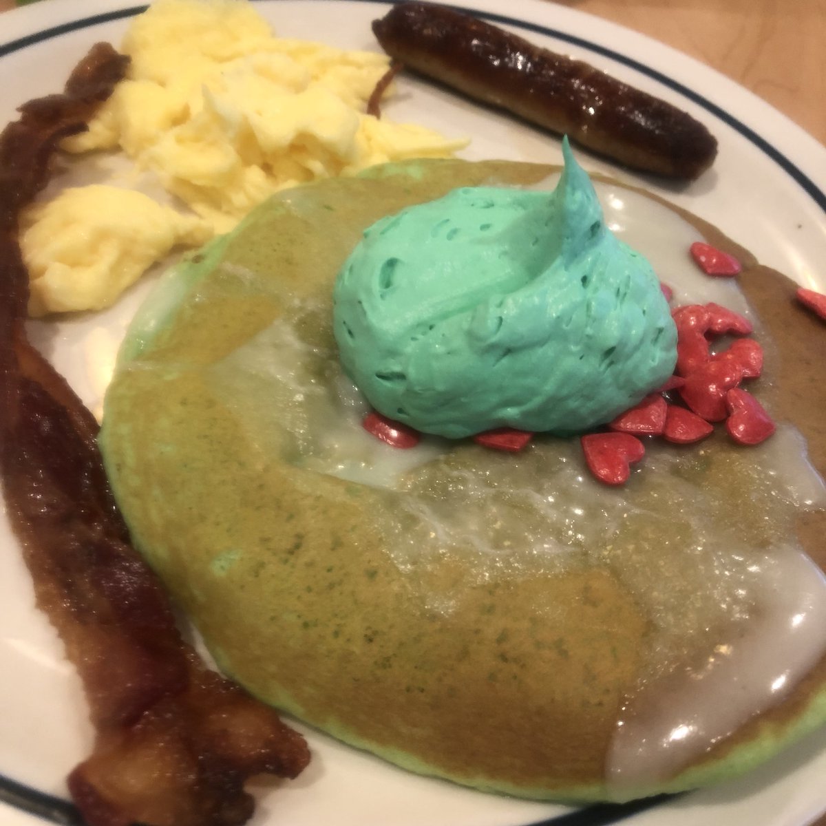 Ihop Inspired By The Grinch Youtube : Top Fluffy Green Pancakes With Cream Cheese Icing, Green Whipped Cream, And Candy Hearts.fun!