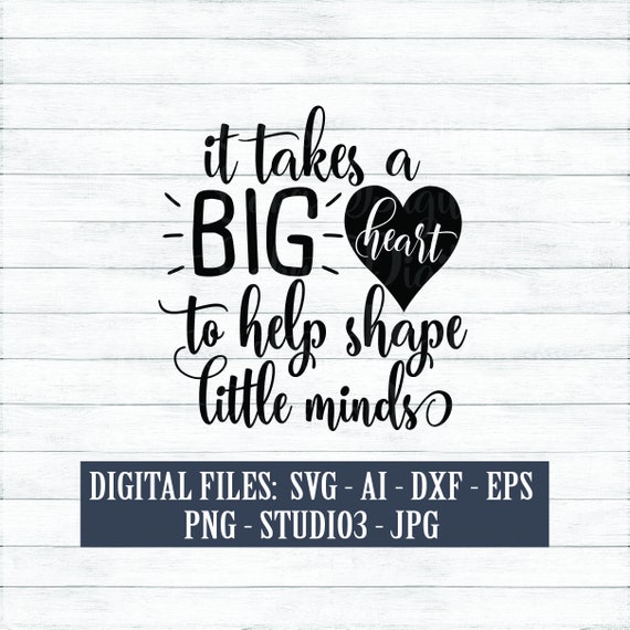 Teacher Svg It Takes A Big Heart To Shape Little Minds Svg Kindergarten Teacher Svg Teacher Tshirt Svg Teacher Trib Big Heart Teacher Gifts Teacher Tshirts. Teacher svg cut file by the smudge factory™ watch us draw on instagram! Cricut air cricut vinyl svg files for cricut cricut help fonts for cricut cricut craft room free svg cut files cut that design provides a large selection of free svg files for silhouette, cricut and other cutting machines. It is especially fun to see their little eyes brighten and big smiles when handing over their gifts. Svg it takes a big heart #7500929. @thesmudgefactory like & follow us on facebook for access to freebies each one is drawn by hand and then taken into the computer and converted into a digital format for you to use in your personal diy projects. Please make sure your machine has the ability to use these formats! In rare situations, on older. If you do not have it, you will need to use the dxf file. Your download includes the following files: What a great way to document your kids' growth (and take it with you if you move)! For silhouette cameo, you must have the designer edition to use the svg file. Both my children made valentines hearts attached to a jar to give with this little gift. Little minds svg, to help shape svg, big heart svg, big heart dxf, help shape minds svg, help shape minds dxf, it takes a big heart. They were delighted to bring special gifts to those they care about. Zipped folder containing this image in svg, dxf, eps, and png form.